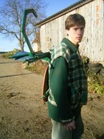 Und zu guter letzt sieht man auf diesem Bild noch wie sich der Hochsitz zum Tragen auf den Rücken schnallen lässt. Als Trageriemen dient dabei die Strickleiter, ne dickere Jacke ist dabei zu empfehlen. Aber die haben Jäger ja meistens....